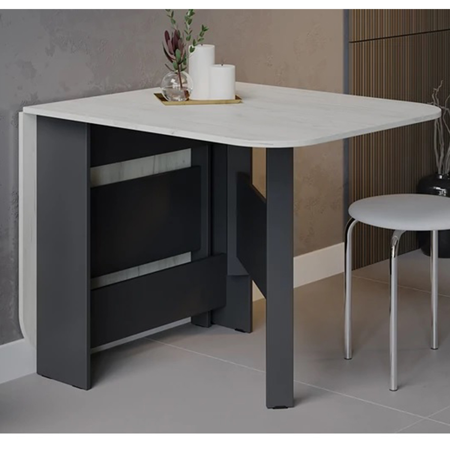 Стол обеденный раскладной 1600мм*800мм Т1 Антрацит/Дуб крафт белый ТриЯ*1