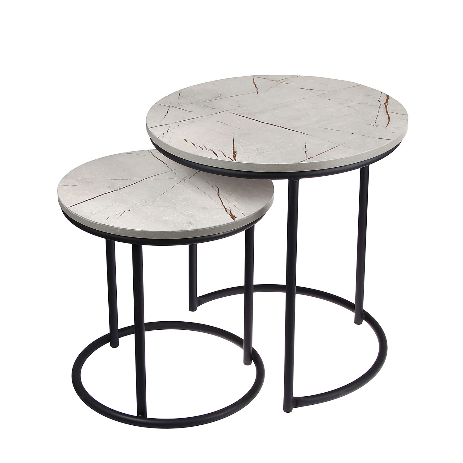 Стол журнальный МАТРЕШКА комплект столешниц 2 шт.ЛДСП Каспий светлы+Подстолье труба КРУГЛАЯ ЧЕРНАЯ*1