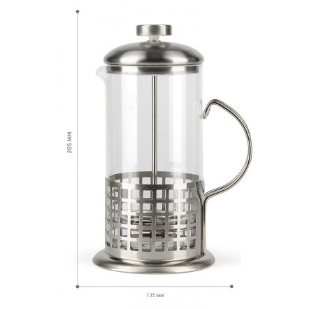 Чайник заварочный жаропрочное стекло "Френч-пресс" 600мл "Light" Серебро (BF-711) "Barouge" *1/40