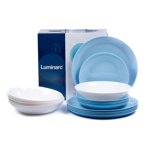 яяяНабор столовый стекло Luminarc 18пр/6перс. ЛАЙТ БЛЮ&УАЙТ P5911 (Франция)*1