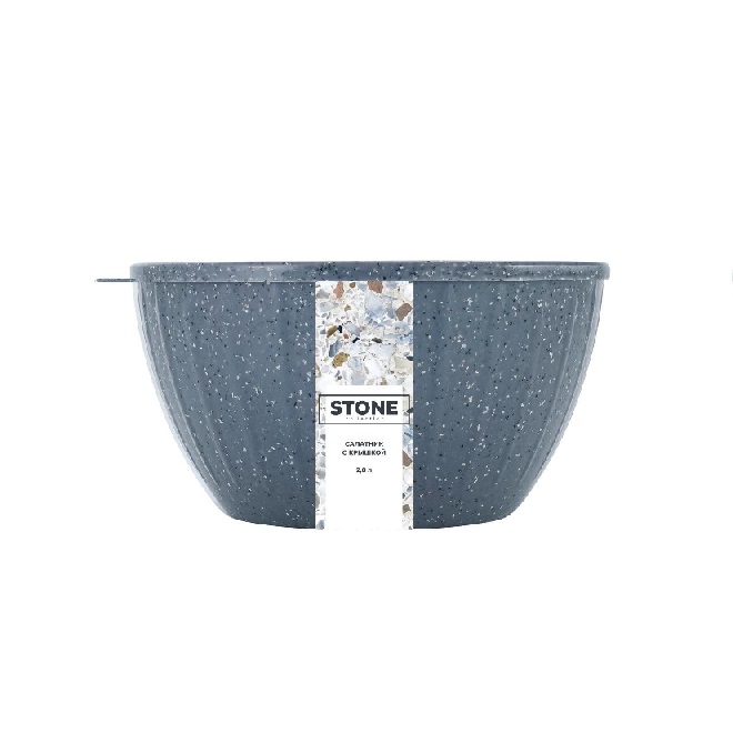 Салатник пластм. "STONE" 2,8л d221мм с крышкой Темный камень SE186711026 ("Sugar Spice") *1/14