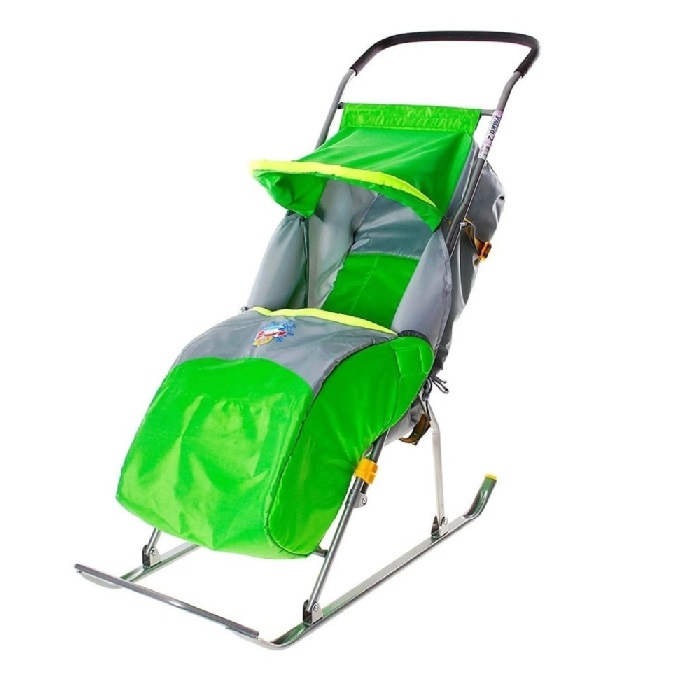 яяяСанки-коляска детские "Умка 2" выс.сид.+чех.д/ног+коз.,ручка.,плоск.полозья Зеленый У2 (Иж.)*1/2