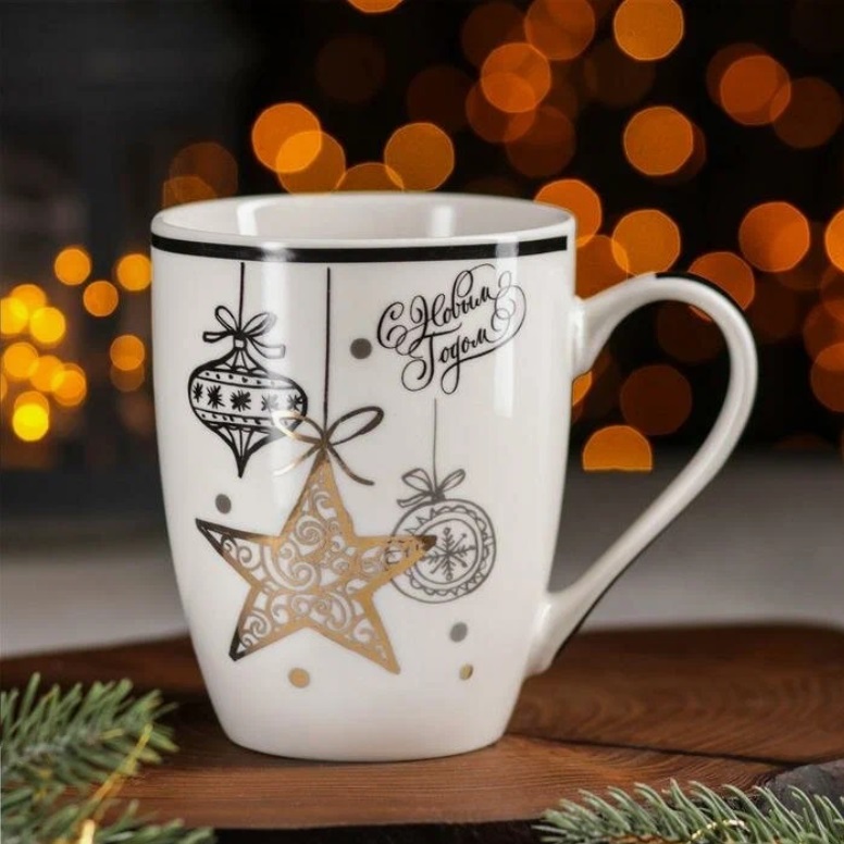 Кружка "Новый год" фарфор. 350мл "Новогодняя звезда" 4274041 "Доляна" *12/48