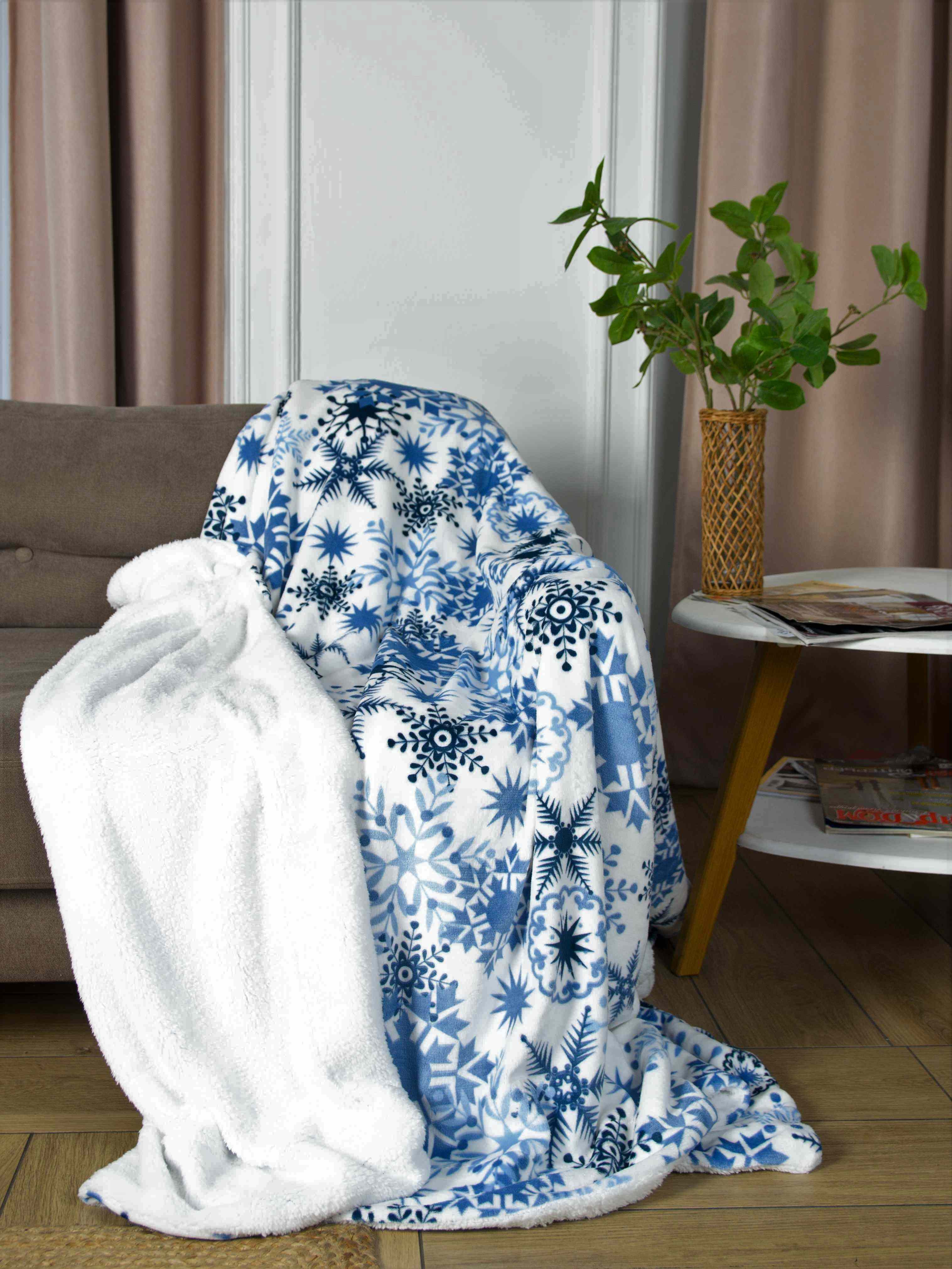 Плед Belezza «Снегопад», 180х200 см, микрофибра, 380 г/м², бело-голубой