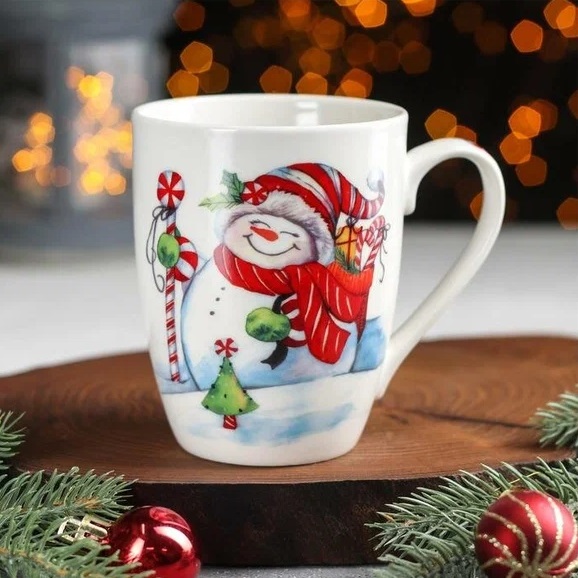 Кружка  "Новый год" фарфор. 350мл "Довольный снеговик" 3324258"Доляна" *12/48