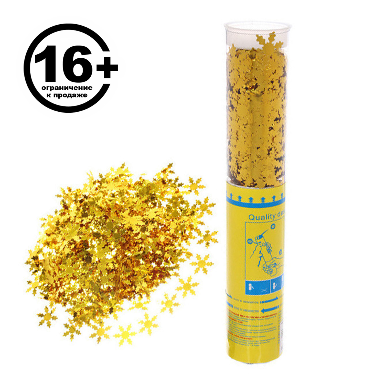 Пневмохлопушка 30 см "Снежинки" конфетти (золото)