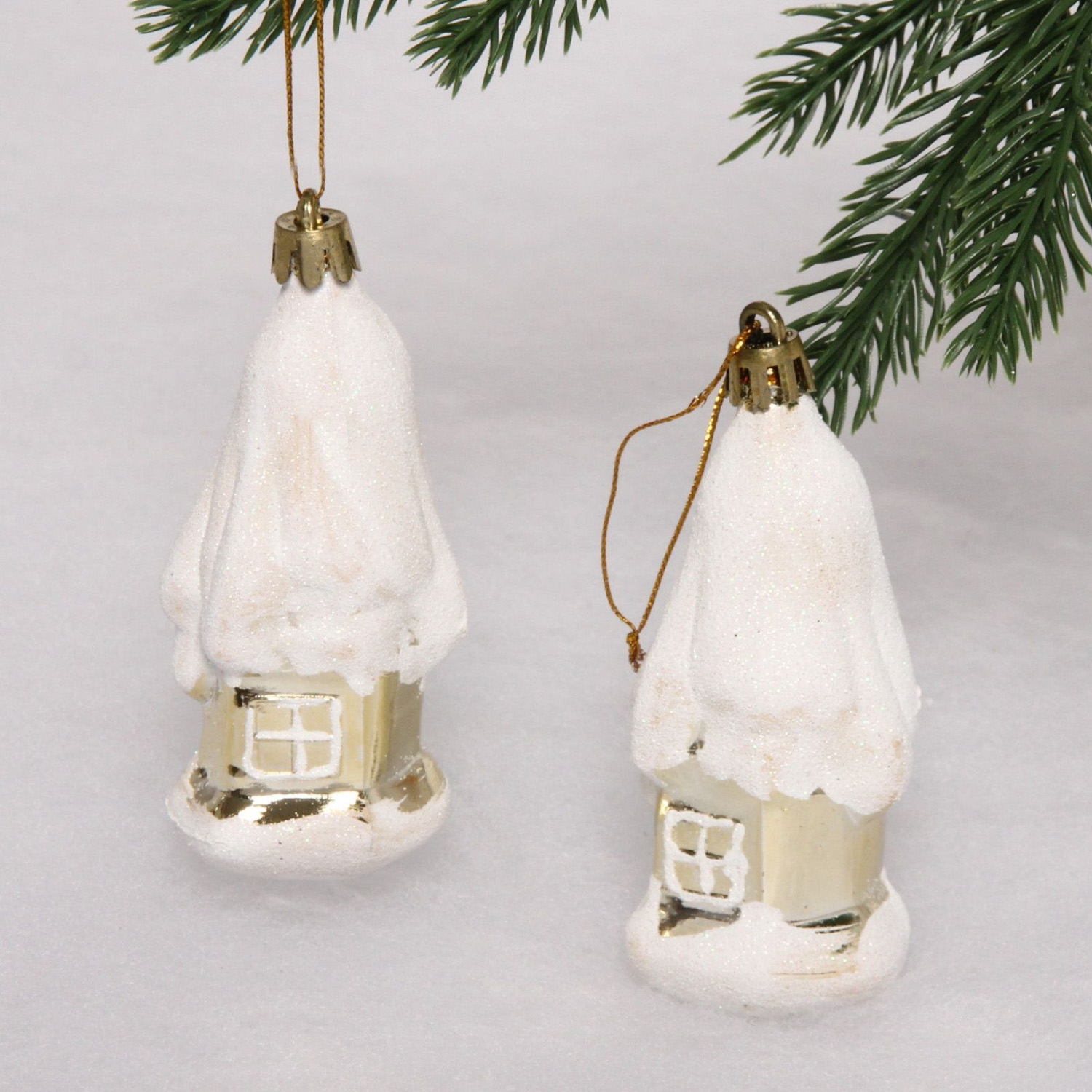 Елочные игрушки "Загадочный домик" 9 см (набор 2 шт), Золото