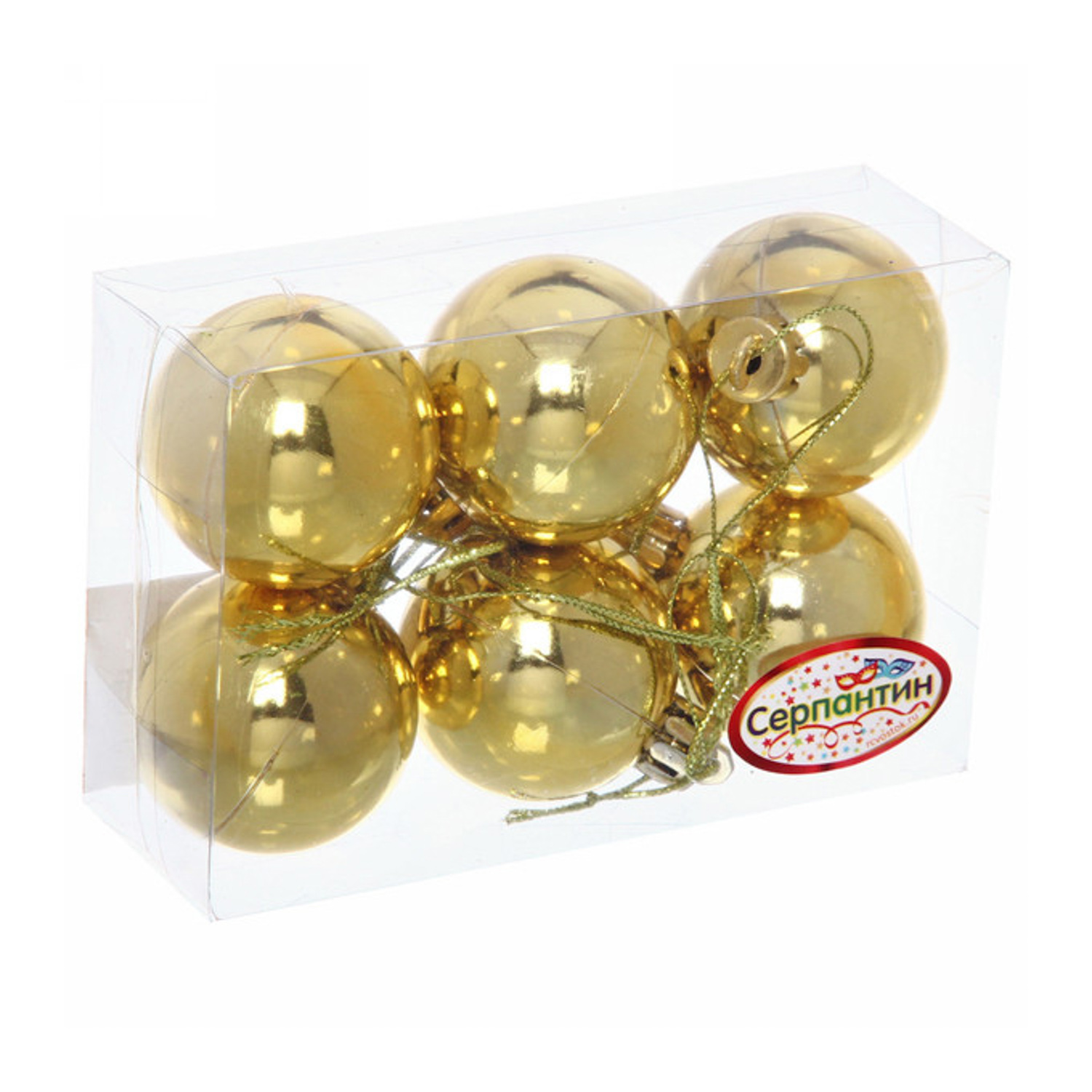Новогодние шары 4 см (набор 6 шт) "Глянец", золотой