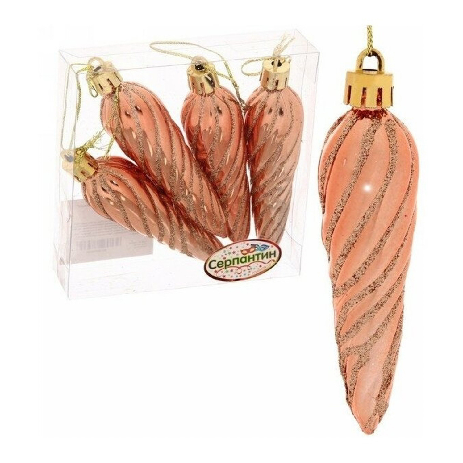 Набор елочных игрушек «Сосулька спиралька», 8,5 см, 4 шт., янтарь