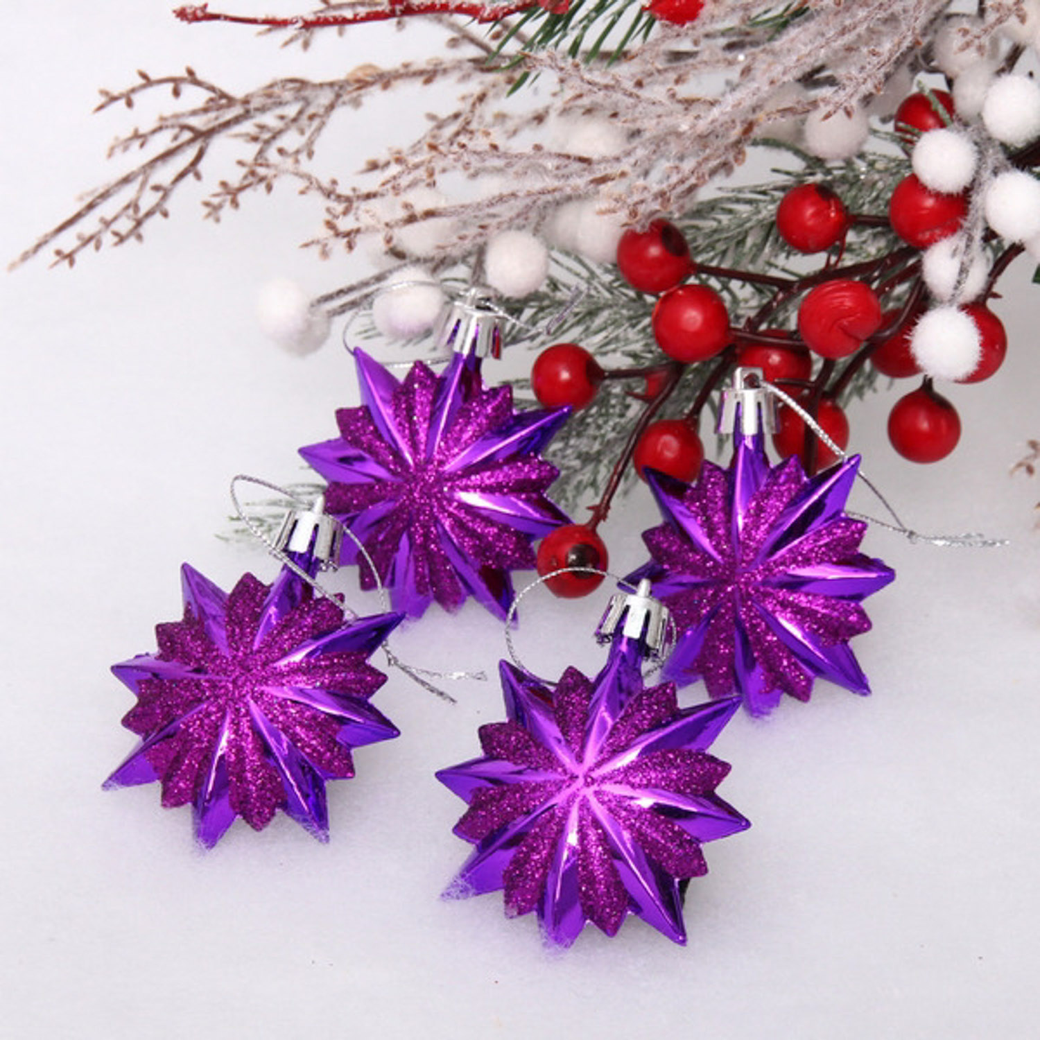 Ёлочные игрушки "Звезда остроконечная" 6 см (набор 4 шт), фиолетовый