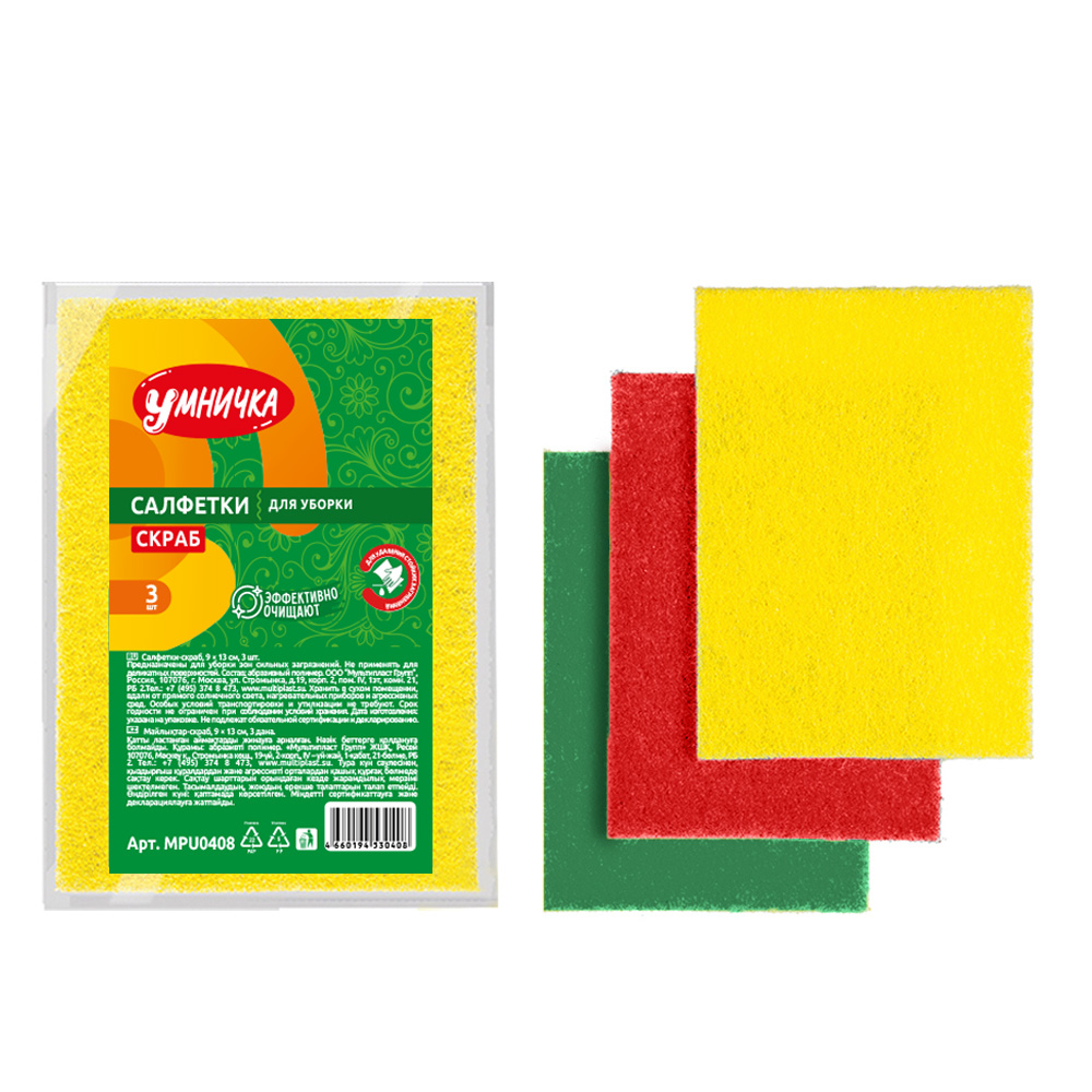 Салфетки для уборки "скраб" 9х13см 3шт MPU0408 "Умничка" *1/50