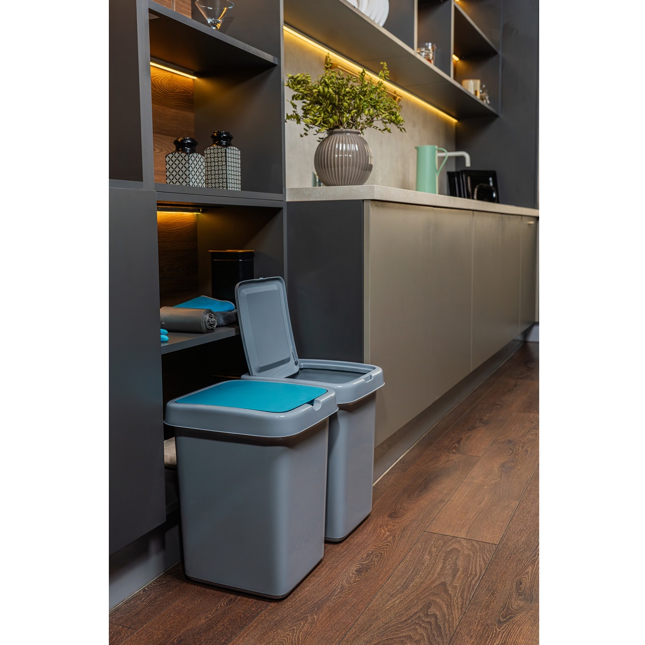Контейнер д/мусора пластм. с откидной+"плавающей" крышкой 25л "Step" Небесн.SV4242НБС"Spin Clea"*1/4