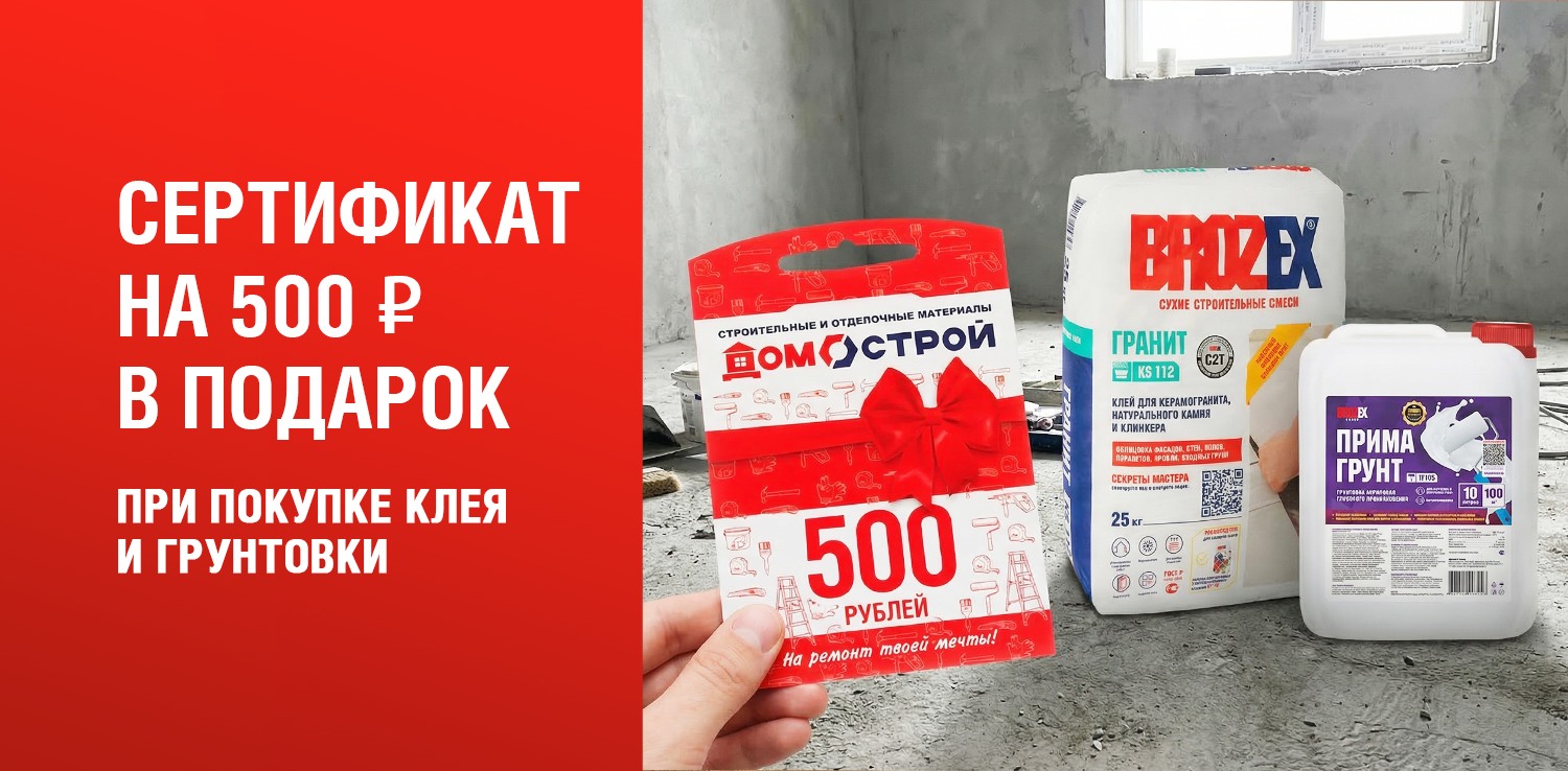 Дарим сертификат при покупке клея для плитки и грунтовки BROZEX