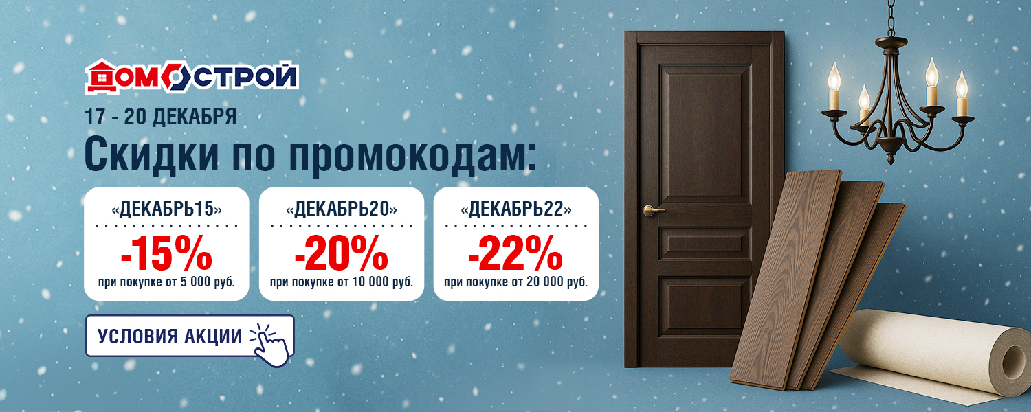 На календаре декабрь — а на сайте domostroy.shop скидки с 17 по 20 декабря! Чем выше сумма покупки, тем больше выгода: