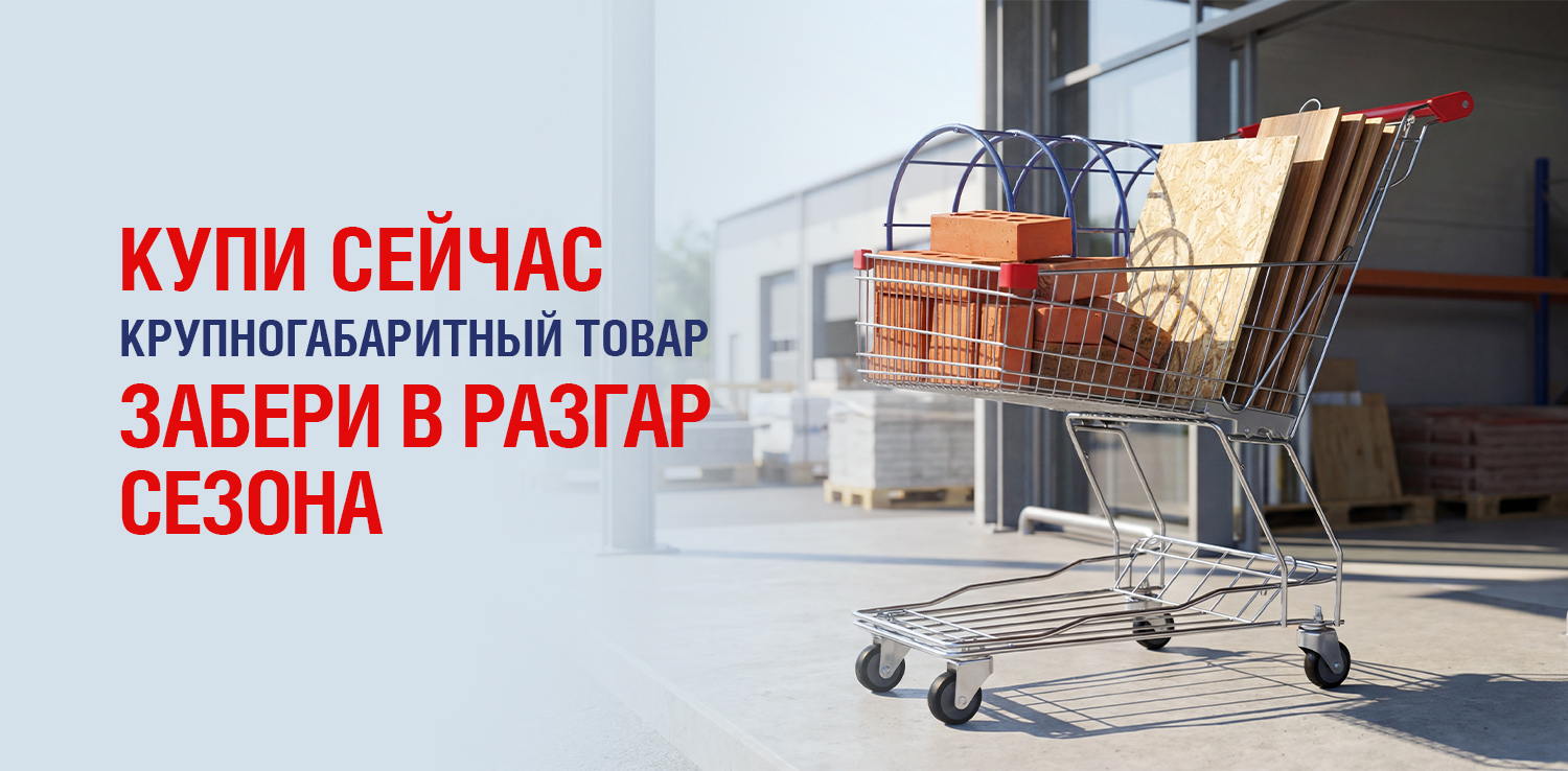 Покупайте листовые материалы, сухие смеси, дерево, кирпич, строительные блоки, тротуарную плитку, сыпучие товары, утеплители, укрывные материалы, поликарбонат, каркасы теплиц, напольные покрытия, керамическую плитку, двери, панели ПВХ или МДФ и другие крупногабаритные товары заранее — а забрать сможете позже, когда начнётся активный сезон работ. Мы бесплатно сохраним вашу покупку до 120 дней* — чтобы вы могли подготовиться без спешки, лишних хлопот и переплат. Отличный способ зафиксировать цену сегодня и спокойно планировать стройку или ремонт на будущее.