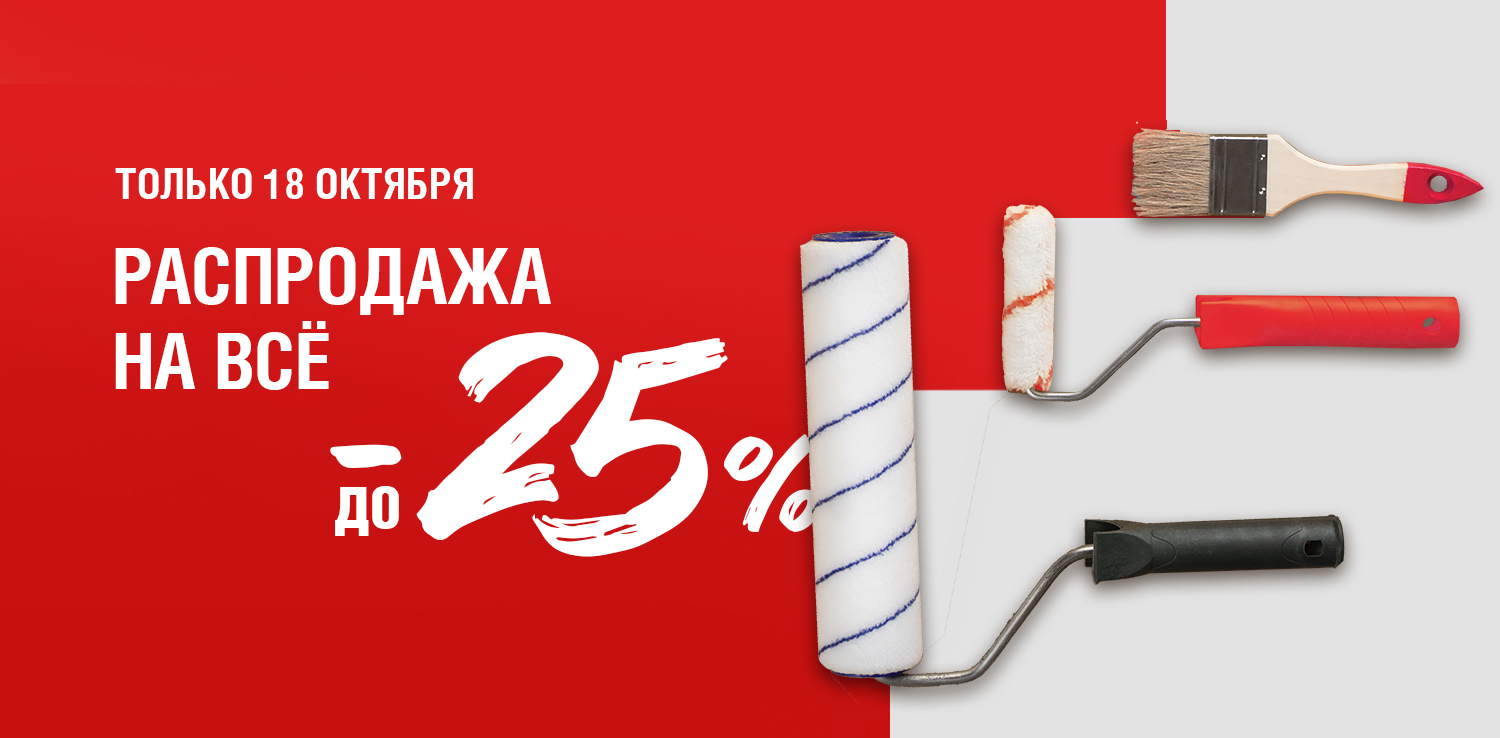 Распродажа только 18 октября! Дарим скидку до -25% на все товары с белыми ценниками. Если у вас запланирован ремонт, строительство или обустройство дома - не упустите возможность купить все необходимое со скидкой: