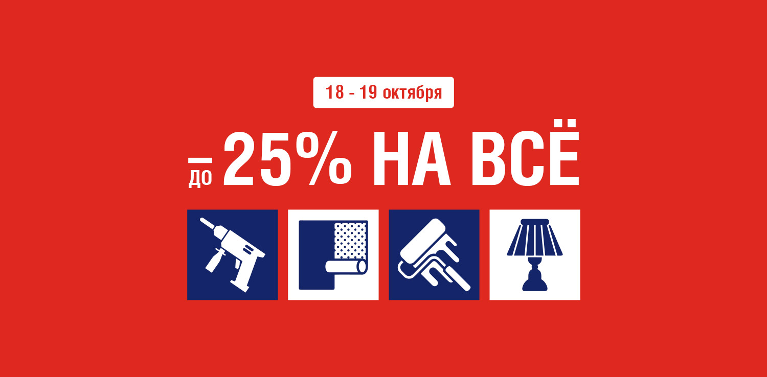 Только 18 и 19 октября в розничных магазинах ДомоСтрой и на сайте — скидки до 25% на все товары. Это отличная возможность приобрести строительные материалы, инструменты, товары для дома и сада по привлекательным ценам!Переходите в категории и выбирайте товары со скидками: