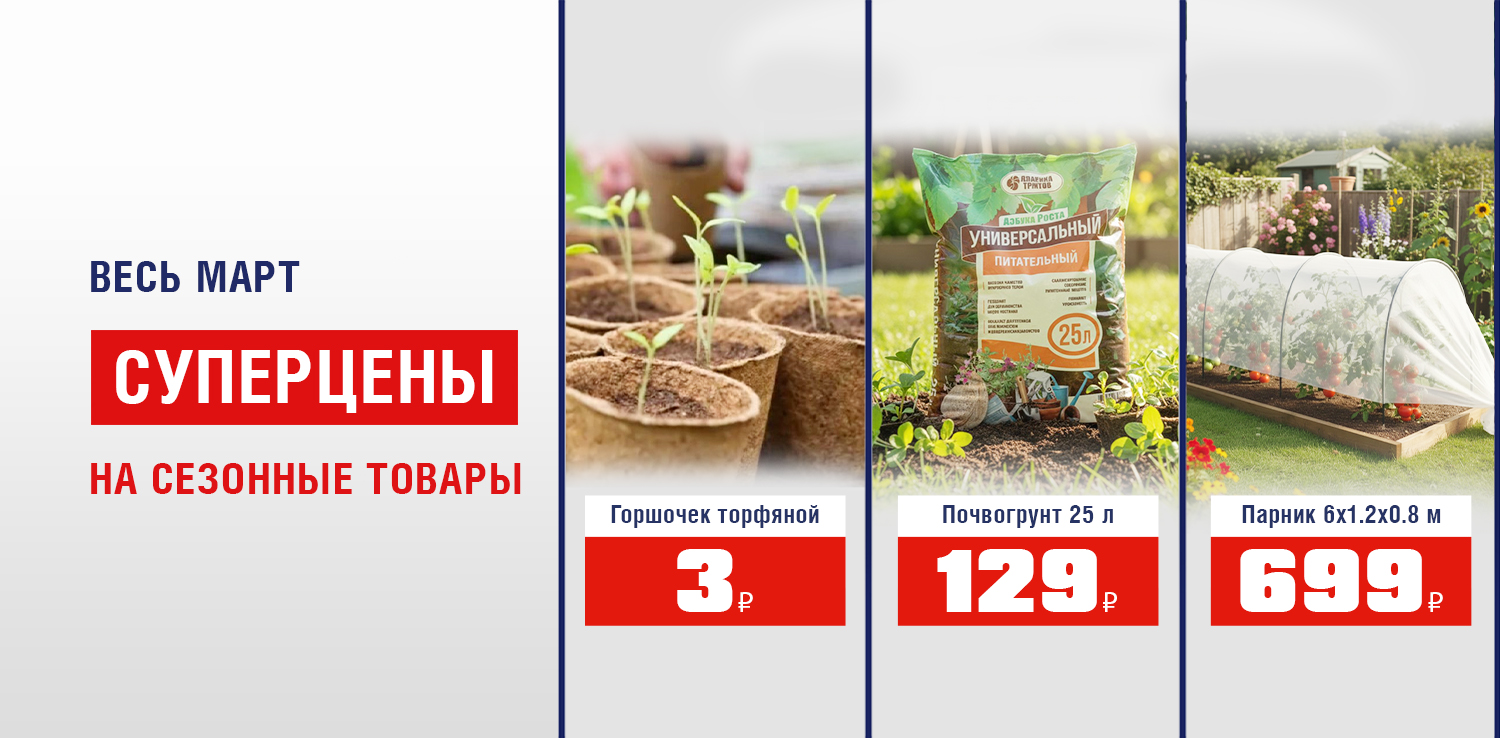 Только до 31 марта в ДомоСтрой суперцены на сезонные товары для дачи и сада! Успейте заказать на сайте или приобрести в магазине.