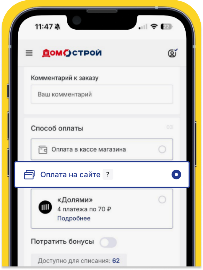 2. Выберите способ оплаты «Оплата на сайте» и нажмите «Оформить заказ»