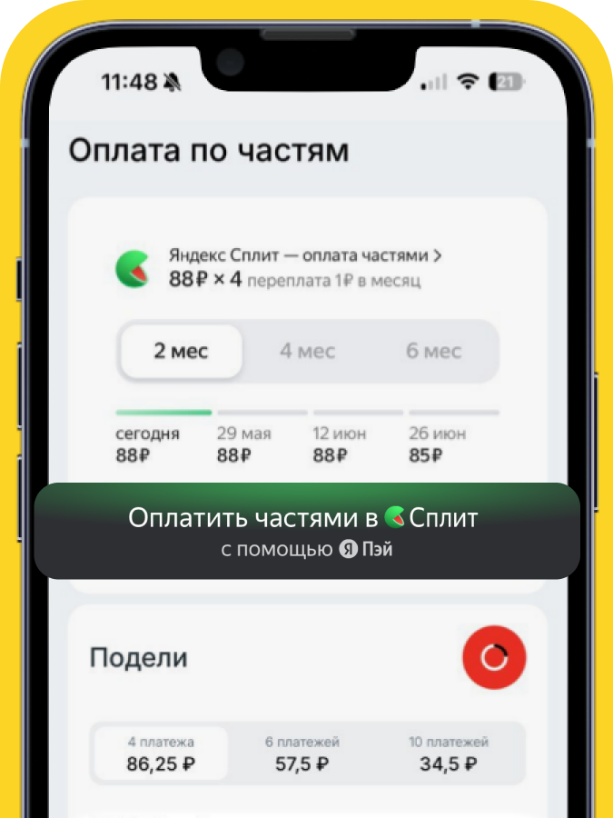 Покупки приятнее с Яндекс Сплитом